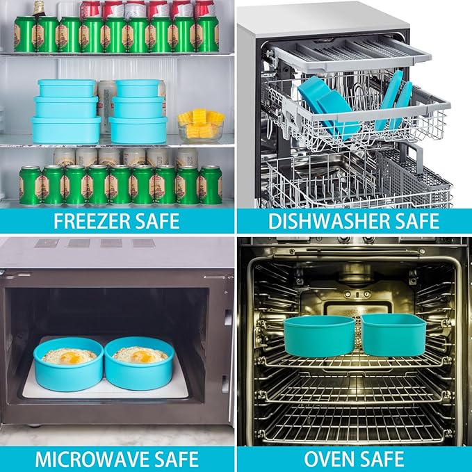 - Material Feature : 100% Silicone, Microwave Safe, Freezer Safe, Oven Safe, Air Fryer Safe, Dishwasher Safe, Plastic Free 100% Silicone, Microwave Safe, Freezer Safe, Oven Safe, Air Fryer Safe, Dishwasher Safe, Plastic Free
