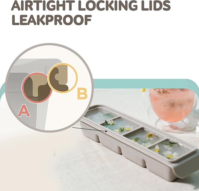 - 【Leak-Proof Freshness】 This double airtight silicone ice tray seals from both the inside and outside, preventing leaks and keeping your contents fresh, whether it's purees, soups, or breastmilk
