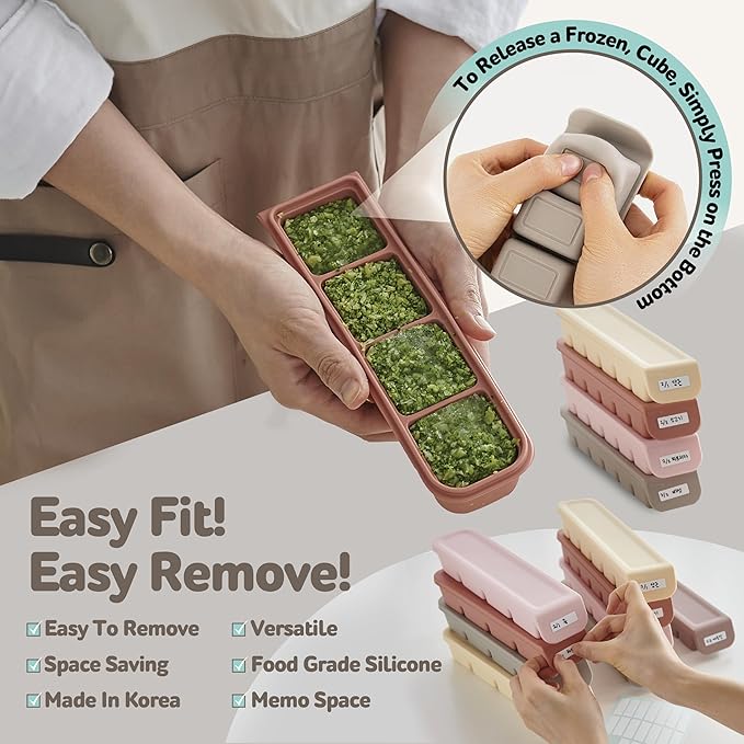 - 【Versatile and Durable】 Made from 100% food-grade, BPA-free silicone, these baby food freezer containers are family-friendly and versatile, being both microwave and steamer safe for your cooking convenience