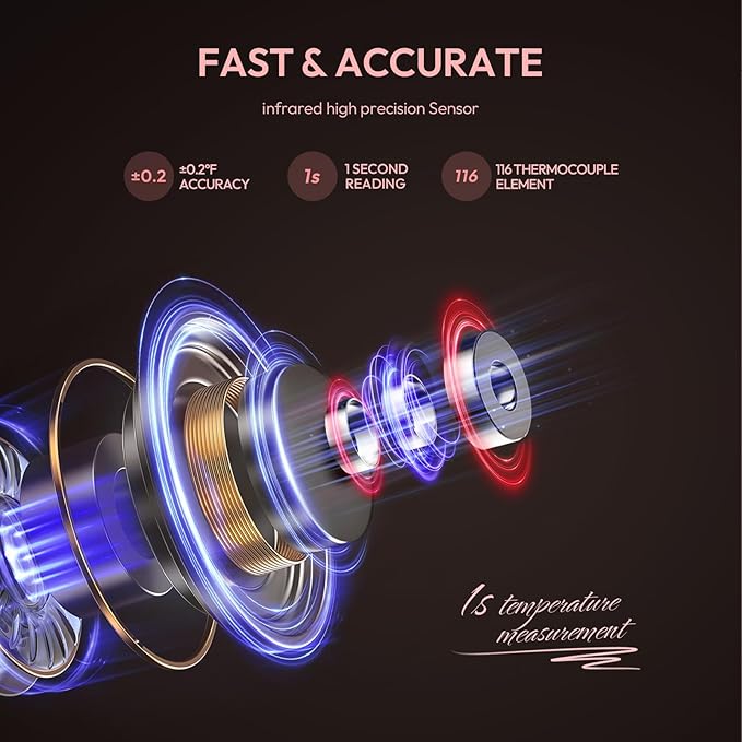 - NO-CONTACT THERMOMETER: This touchless thermometer measures temperature without physical contact, providing a safer and more hygienic experience for all! Fast and accurate temperature readings within 1 second, providing precise measurements for quick and convenient use