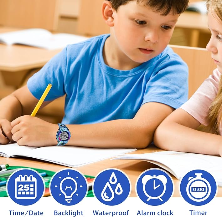 - ⌚【Multifunctional Kids Watch】Our digital watch not only has date, 12/24 hours, alarm clock, stopwatch timing, but also has LED backlight, 50M waterproof multifunctional design, it also comes with detailed instructions for use, I believe your children will like it.