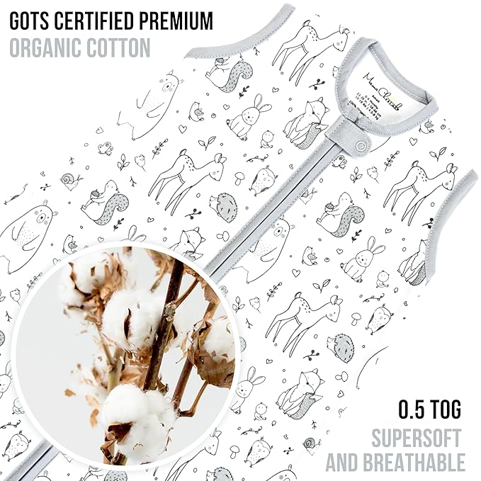 Mama Cheetah Baby Sleep Sack 0.5 TOG, Organic Cotton Baby Wearable Blanket with Two-Way Zipper, Swaddle Transition Baby Sleeping Bag for Newborn Infant Toddler Boy Girl, 0-6 Months