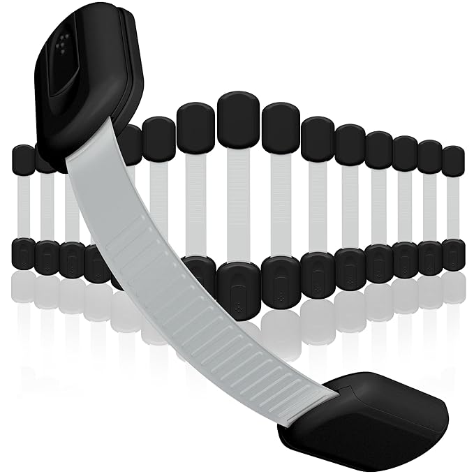 - 8 multi-purpose cabinet locks that has a high grade 3M adhesive. Flexible strap means you can bend around items from toilet seats to fridges