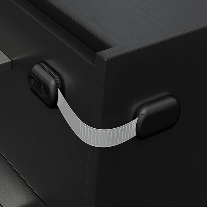 • What You Get: 12 multi-purpose cabinet locks that has a high grade 3M adhesive. Flexible strap means you can bend around items from toilet seats to fridges