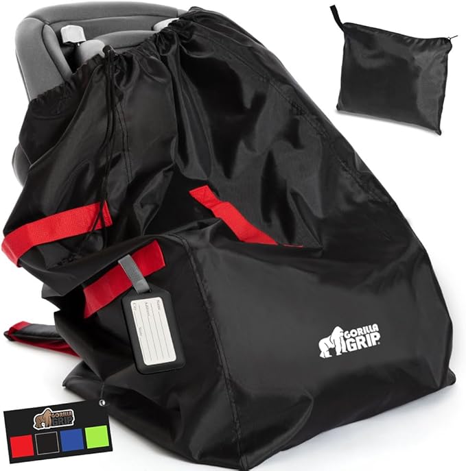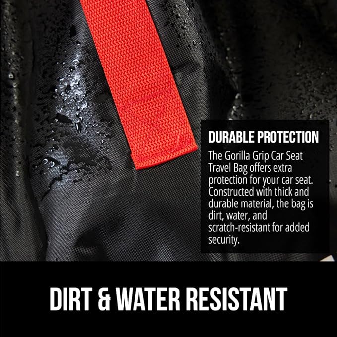 - DURABLE PROTECTION FOR YOUR CAR SEAT: a must for traveling, the Gorilla Grip Car Seat Travel Bag is designed to help protect your car seat while you travel; bag is water, tear and dirt resistant; features drawstring closure that tightly closes around the car seat, helping to protect from dirt, grime and moisture; bag is made of lightweight, yet durable material that can be machine washed