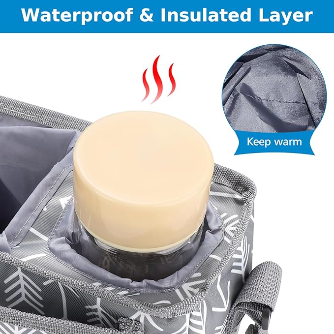 - Structured Stroller Organizer: This stroller caddy features an internal partition system that provides multifunctional compartments for efficient organization. The middle large storage compartment can storage baby diapers, toys, clothes, pacifiers or other accessories; 2 insulated cup holders on two sides, can be used to place baby bottles, beverage cups, water bottles etc. A convenient open pocket on the front for easy access to wet wipes or tissue.
