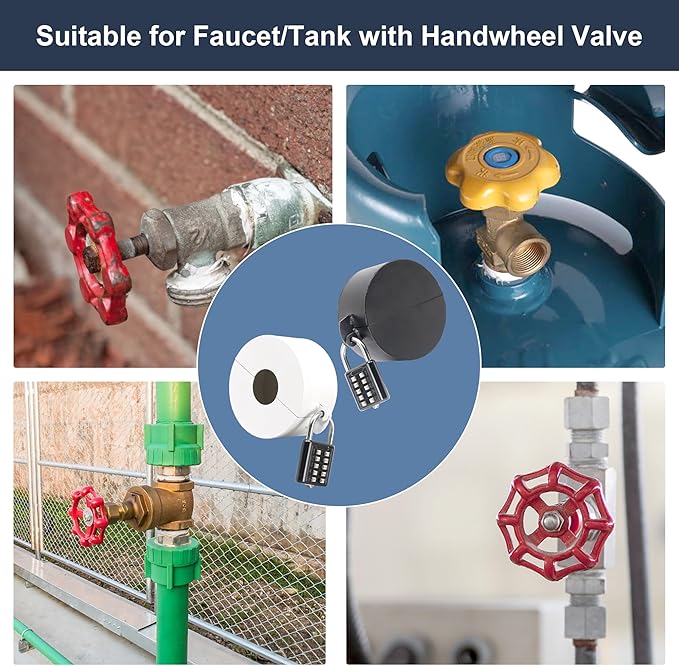 - Outdoor Faucet Cover: The door lock for renters not only prevent door locks from being maliciously turned, but they can also lock outdoor faucet switches to prevent children from playing with water or water theft. Water spigot lock can also be used to cover garden hose bib locks, propane tank locks, gate valve lockout and more.