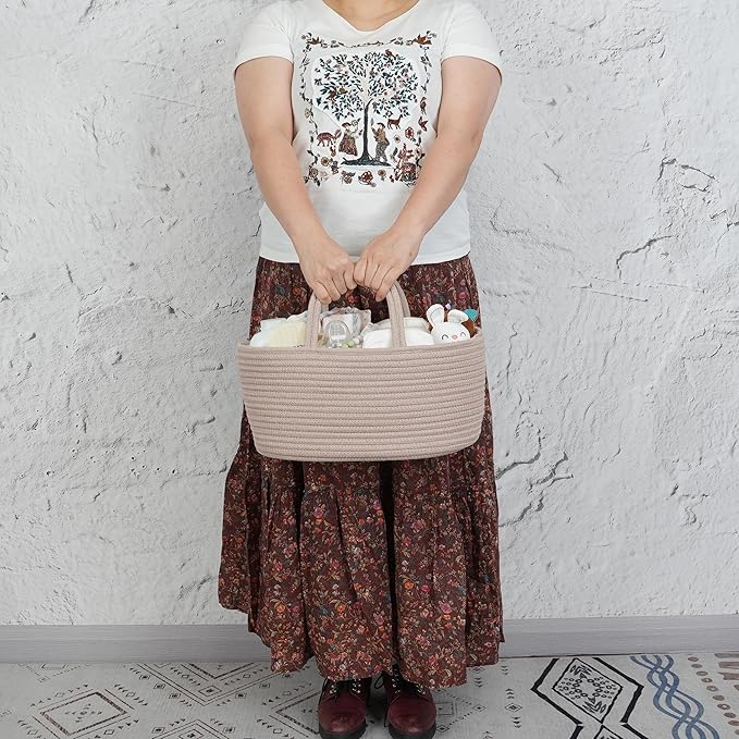 Diaper Caddy Organizer Cotton Rope Baby Basket Nursery Storage and Portable Tote Bag for Car Ideal Baby Shower Gifts and Registry Must-Have for Newborn Essentials light konjak