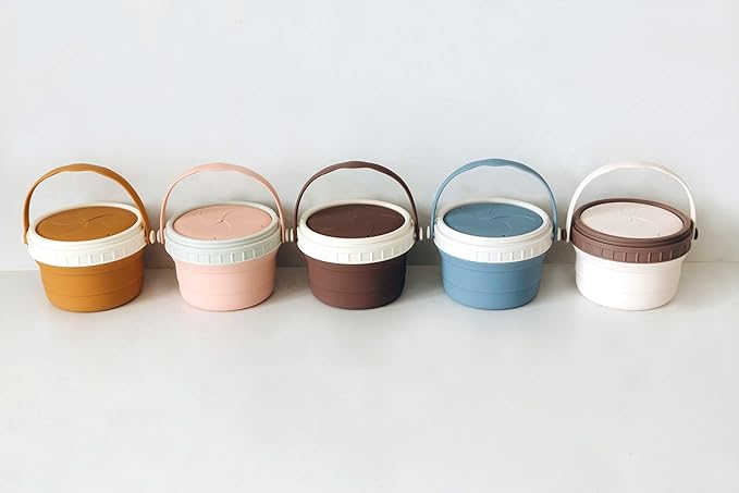 No Spill Silicone Toddler Snack Containers, Detachable Silicone Flap for Filling&Cleaning, Crumb-Free Hard Plastic Screw Travel Lid, Ultra-Soft for Baby Kids Hand In-Out, Snack Cup Holder 12 oz