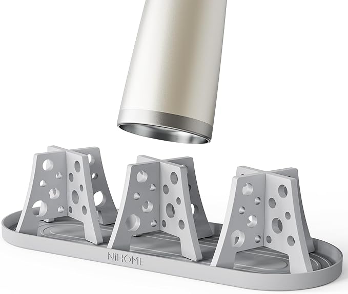 NiHome Silicone Water Bottle Drying Racks Set of 3 with Drip Tray,Cheese Style for Faster Drying,Bottle Dryer Racks Fit for Stanley YETI Cups Owala Sports Bottle Baby Bottle Thermoses Mugs