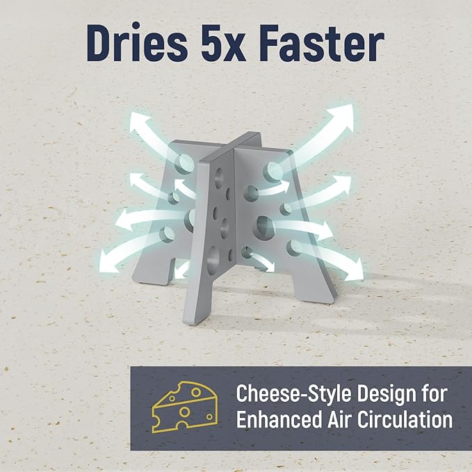 - 【Cheese-Inspired Design, Quick-Drying】Our cup drying rack is inspired by the shape of food cheese, where the designer used the cheese's distinctive, uneven holes as inspiration. Combined with the need for cups to dry quickly, we created a cheese-shaped cup drying rack. The assembled rack offers better ventilation and a more attractive design compared to the cylindrical products available on the market.