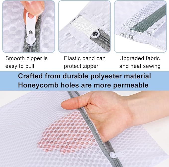 - GENTLE & EFFECTIVE CLEANING - Our durable honeycomb mesh laundry bag is specially designed for gentle cleaning of delicate clothes, preventing wear and tear in washing machines and dryers and prolonging the life of your delicates.