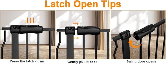 - 【Easy to Use】One hand operation design,Adults can easily open the stairway baby door with one hand, it is easy to open and close. Perfect for stairways, doorways, or hallways, creating a safe growth environment.
