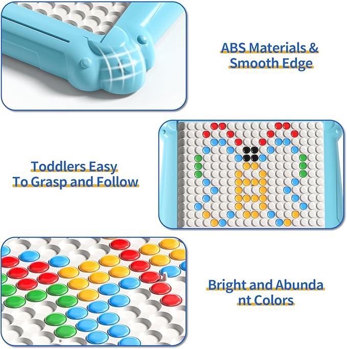 - 【Well Designed Non-toxic】Magnetic drawing board is made of kids friendly ABS plastic material. The rounded corners of the magnetic dots board are smooth to take care of little ones' small hands. All magnetic beans are sealed inside a clear acrylic panel which can effectively avoid the risk of toddlers swallowing. The magnetic pen has just the right magnetic force to pick up 1 magnetic bead, avoiding the situation where the bead cannot be moved or 2 beads are picked up at the same time.