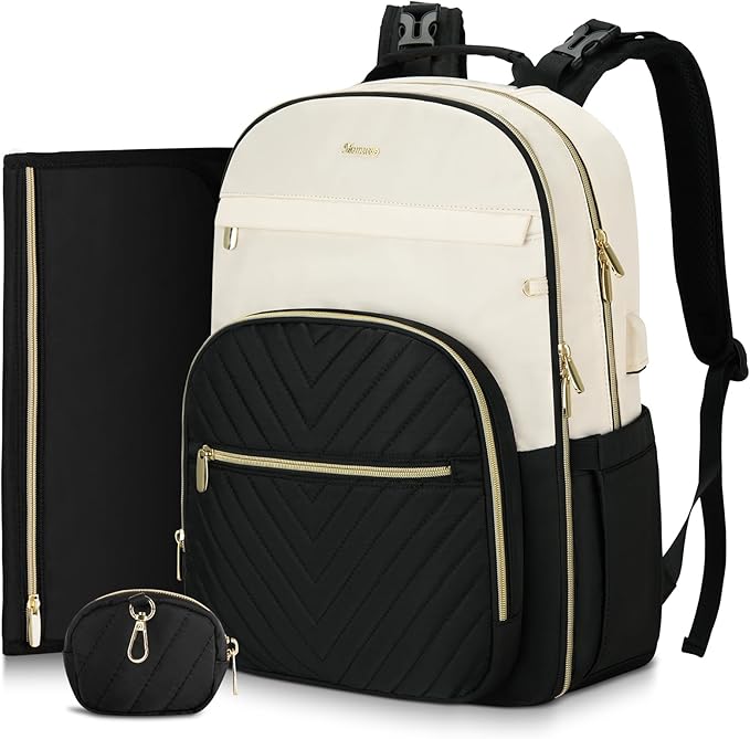 - Convenient and Thoughtful: Baby diaper bag features 15.6’’ padded laptop pocket and 12.9’’ iPad pocket in the main compartment, USB charging port, 2 built-in stroller straps, waterproof pocket, back anti theft pocket, dual zippers for easy access and closure even with one hand! Also we have added a luggage sleeve on the back so it can easily slide over a carryon luggage while on the go.