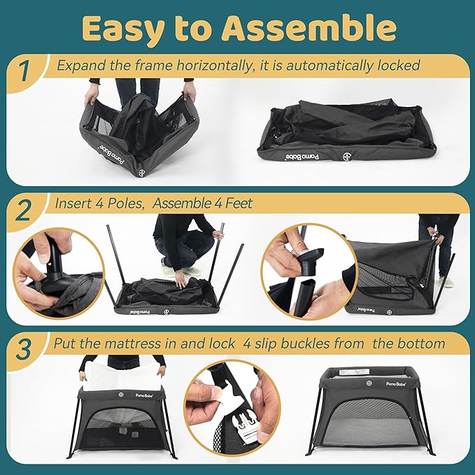 Pamo Babe Travel Crib Lightweight Baby Playard with Mattress Compact Play Yard with Detachable Legs