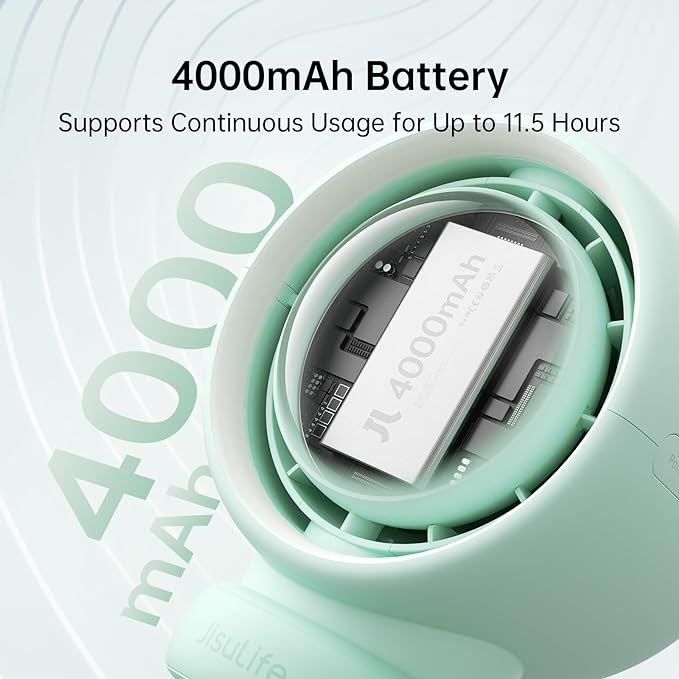 JISULIFE Stroller Fan Baby Large, Safe Bladeless for Crib, Desk, 4000mAh Battery Rechargeable Portable Cooling Fan with Air Turbo Tech, Night Light, Food-Grade Gift for Mom/Dad/Friend - Green