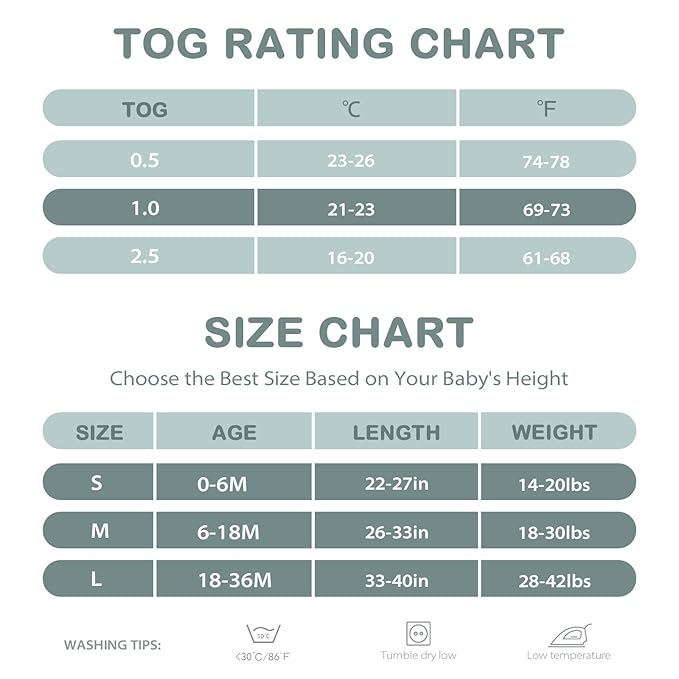 - 【ROOMY & LONGER WEAR】 Extra Leg Room / Length for kicking free (hip healthy) and room to grow, but cannot be kicked off. 1.0 TOG rating for the perfect all-season weight. Reinforced Stitching & Quilting for durability.
