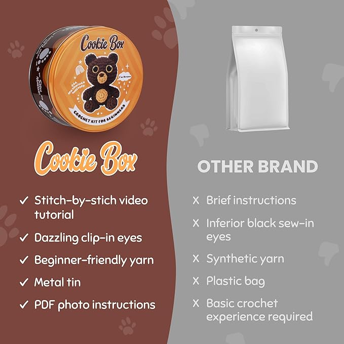 Cookie Box Crochet Kit for Beginners - Learn to Craft Amigurumi Stuffed Animals - Knitting Gift for Kids and Adults - Beginner-Friendly Yarn - Stitch-by-Stitch Video Tutorial - Bear Bruno