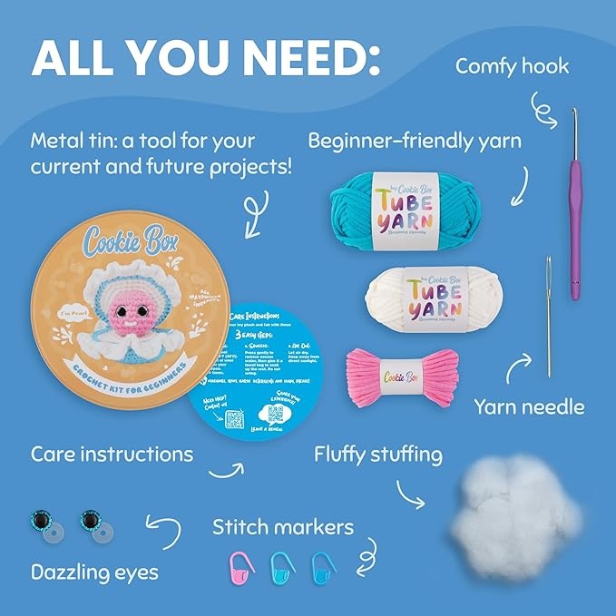 - ๐ Our Promise to You: The entire Cookie Box team is committed to making crochet truly beginner-friendly, frustration-free, and rewarding. Every kit is designed for the best learning experience, combining high-quality materials, clear guidance, and real support. Thank you for being part of the Cookie Box crochet community!
