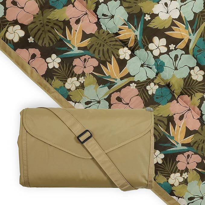 Little Unicorn 5'x7' Outdoor Family Picnic & Beach Blanket | Durable & Water-Resistant Fabric | Compact Fold & Easily Wipes Clean | Zipper Pocket (Hibiscus)