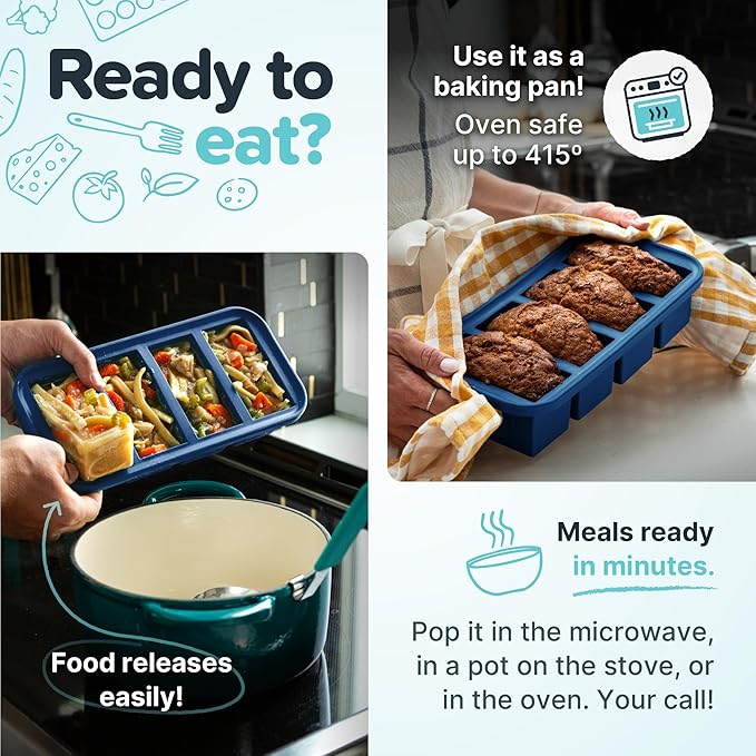 - MEAL PREP: Spend less time thinking about what you're going to eat and more time enjoying it. Our silicone freezer tray with lid is designed to make meal prep a breeze. They are made from 100% pure platinum food-grade silicone with a steel-reinforced top and a convenient lid.