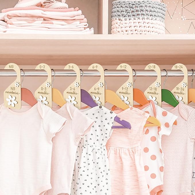 - Multi-age Closet Dividers: 7Pcs clothing dividers cover all ages from newborn to toddler, Newborn, 0-3 months, 3-6 months, 6-9 months, 9-12 months, 12-18 months, and 18-24 months. Keep your baby's clothes neat and organized and always find out what fits.