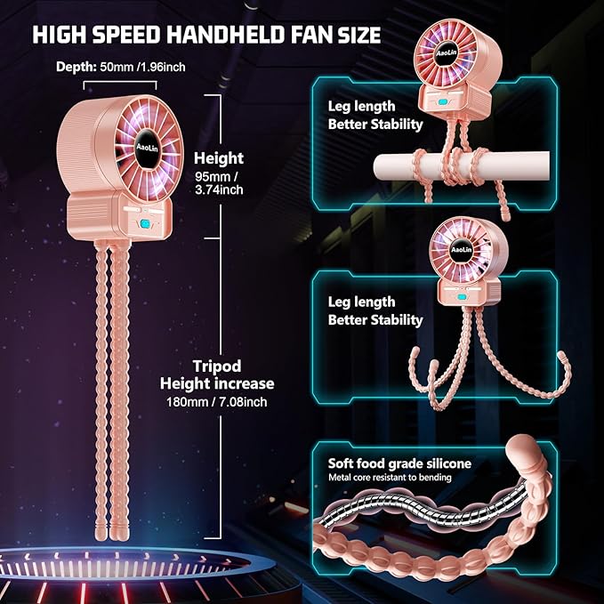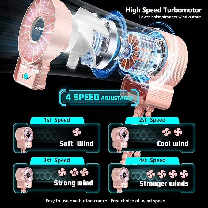 - 【4 Speeds and Quiet】-AaoLin small portable fan built-in high speed brushless motor,It can provide powerful airflow but is quiet.It comes with 4 speeds for different purpose,Its highest gear has a speed of 6600rpm.Summer gifts for kids,travel beach cruise ship essentials,very practical stroller accessories!