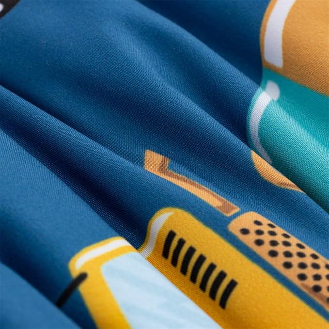 NTBED 4 Pieces Traffic Construction Toddler Bedding Set for Baby Boys,Truck Vehicles Excavator Cars Printed, Includes Comforter, Flat Sheet, Fitted Sheet and Pillowcase,Blue