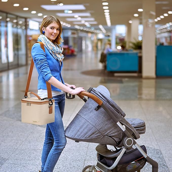 Breastmilk Cooler Bag with Ice Pack Fits 6 Baby Bottles Up to 5 Ounce, Baby Bottle Bag with Shoulder Strap for Nursing Mom Daycare, Cream