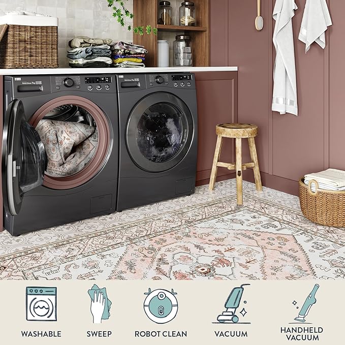 - 【Machine Washable Rugs】:Lahome washable area rugs are created to make maintenance a breeze. Not easy to change its shape after washing. Use a handheld small vacuum cleaner to remove the dust or hair for daily care. Wipes up spills on the surface of the rug directly. Machine wash with cold water on gentle cycle. Do Not Use Chlorine Or Bleach