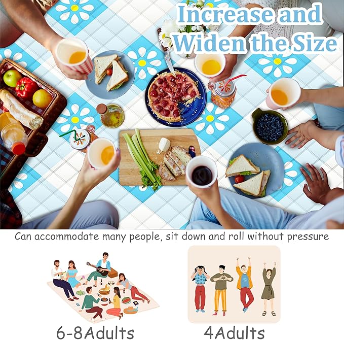 - ⛺⛺⛺【Larger and Thicker Design】This waterproof blanket can accommodate 6-8 people and can be used as a beach blanket,It create a designated space for family and friends to gather, eat together, play games, or simply enjoy each other's outdoors. They promote a sense of togetherness and make outdoor experiences more memorable and comfortable.