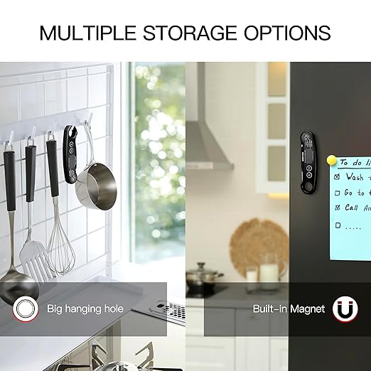 - Versatile Use, Convenient and Practical: Designed with a large hanging loop and a strong built-in magnet, this thermometer can be easily hung or securely adhered to metal surfaces, adapting to a variety of usage scenarios and improving efficiency. It's a breeze to handle in kitchen and barbecue settings.