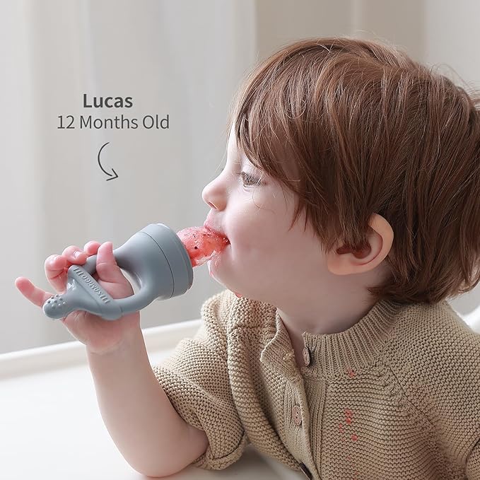 - Brighten up Teething Time - Our food feeder is super easy for babies to hold/chew and for parents to open/close like a breeze. The soft pouch only allows small pieces to pass through, and the teething part beautifully resembles a pacifier for soothing sore gums.