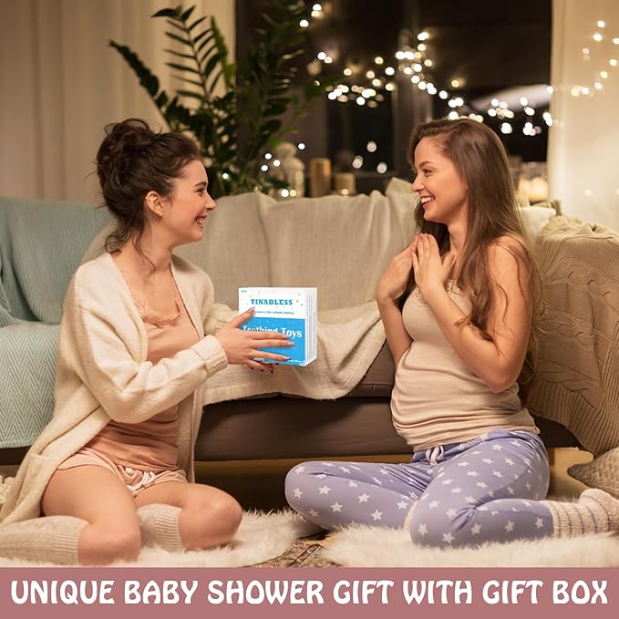 - Adorable and Perfect gift - There is no better gift than some peaceful time for new parents.The teether toy can entertain the loved little one while helping soothe sore gums. Package include five teethers that keep the baby amused at home or on the go.