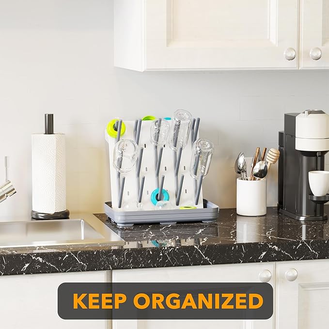 - SPACE SAVING DESIGN - The drying rack is compact enough to save counter space yet spacious enough to dry many bottles and accessories; A must have for any household with newborn baby items