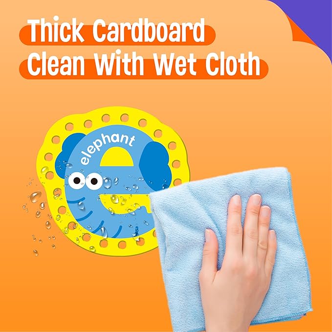 - Double-sided Printing: 26 alphabet lacing cards are double-sided printed. The front side is printed with lowercase letters with cute animals, including animals’ names, such as letter c designed in cat image with the word “cat”. While the back side is some basic words with related illustrations, allowing children to master alphabet and words and images at the same time. Adorable designs with vibrant color make learning fun and engaging.
