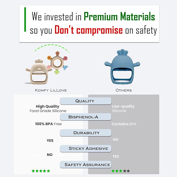 - Safe, One-Piece Design: Each silicone baby teether is made from food-grade, BPA-free material with a seamless, one-piece construction. No small parts or loose ends just a safe, durable design that gives parents peace of mind during every soothing session.