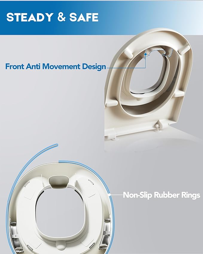 - CONVENIENT DESIGN: Our Toilet Training Seat fits most standard toilets securely. It's lightweight and perfect for travel use as well.(Includes free storage hook)