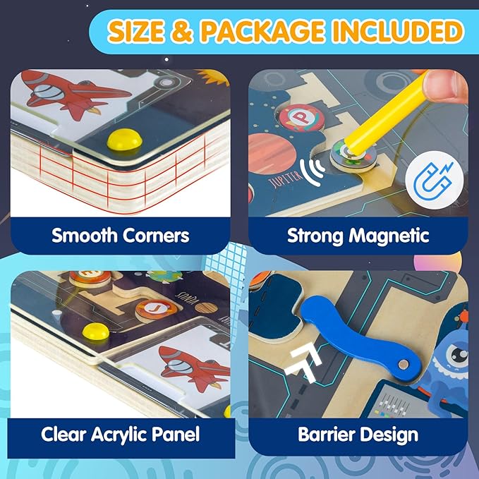- DURABLE & SAFE MATERIALS: The magnetic alphabet maze letter puzzle is made from high-quality wood and featuring a clear acrylic panel to keep sturdy and safe. The acrylic panel effectively prevents direct contact with the magnetic beads, reducing the risk of swallowing and ensuring a worry-free playtime.