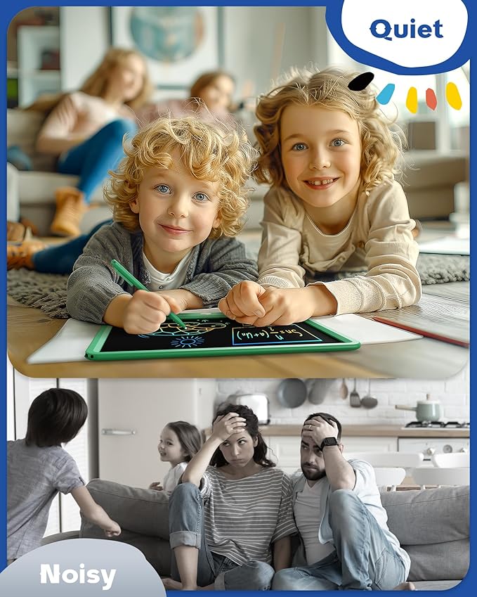 - KEEP NOISY KIDS SLIENT: Are you facing the confusion how to quiet a noisy childοΌLCD Writing Tablet easily allows children to quietly immerse themselves in the rainbow world. The doodle board also can be used in multiple places: airplane, car, restaurant, sofa, etc. The perfect travel essentials for kids!!!