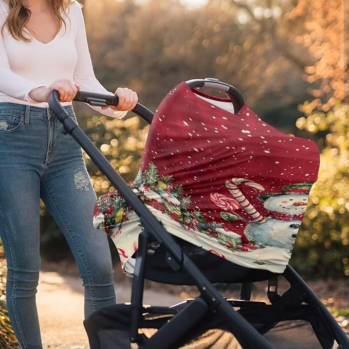 Binienty Snowman Car Seat Covers for Baby Boys Girls Infants,Christmas Snowman Carseat Canopy Cover Stretchy Breathable Babies Stroller Cover Canopies,Baby Shower Gifts
