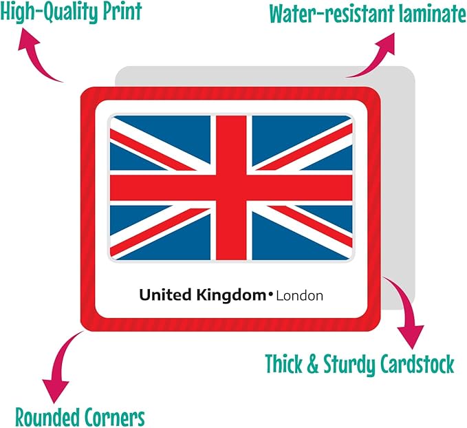 - 100 CARDS FEATURING FLAGS OF EUROPE: Includes 50 matching pairs with each country’s flag, name, and capital. A fun and effective way to explore European geography through play.