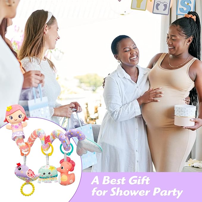 Car Seat Toys for Babies 0-6 Months Boy Girl Carseat Toys Hanging Spiral Stroller Toy, Infant Toy 0-6 Months Baby Newborn 0 3 Month Brain Development with Music Teether Rattle