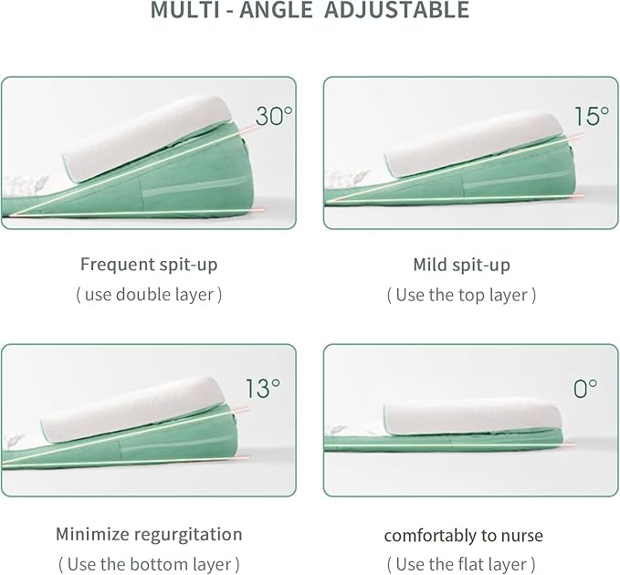 SISTIN Baby Anti Overflow Feeding Pillow, Baby Multifunctional Feeding Support Pillow, Travel Portable Feeding Pillow, Removable Adjustable,Green