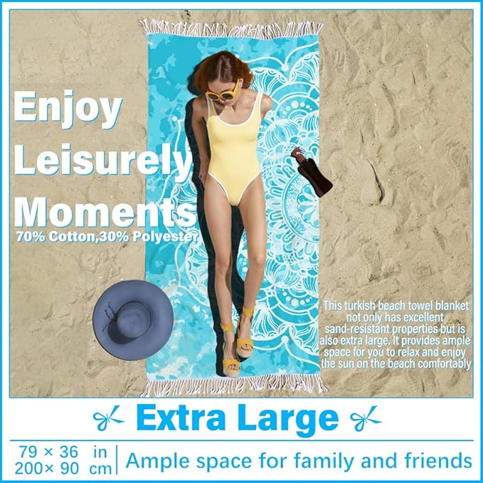 - SAND FREE:Featuring advanced sand resistant fabric,this turkish beach towel blanket prevents sand from sticking to its surface,making it easy to clean just shake it off with a quick flick.Enjoy a cleaner,more pleasant beach outing without the annoyance of sand clinging to your towel