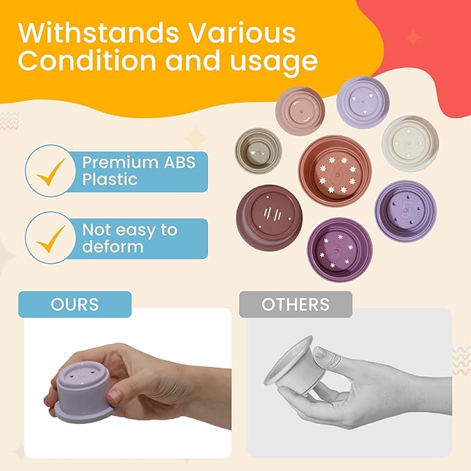 • VERSATILE PLAYTIME - Our stacking cup toy set presents endless play opportunities! They're not just for stacking - your child can integrate these kids stacking cups with sand-play, water-play, and more.