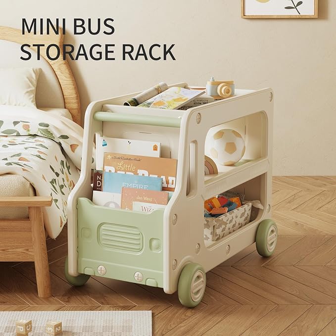 - Spacious Storage Solution: The Deer COCO toy organizer combines fun with functionality, featuring a delightful bus theme that will excite your child about tidying up. This adorable toy storage organizer features 2 large bins and an open cabinet with an open 2-layered , perfect for storing kids’ toys, dolls, snacks, books, games and more. Its lightweight construction makes it easy to move, so it can be a perfect fit in playrooms, bedrooms, or nurseries.