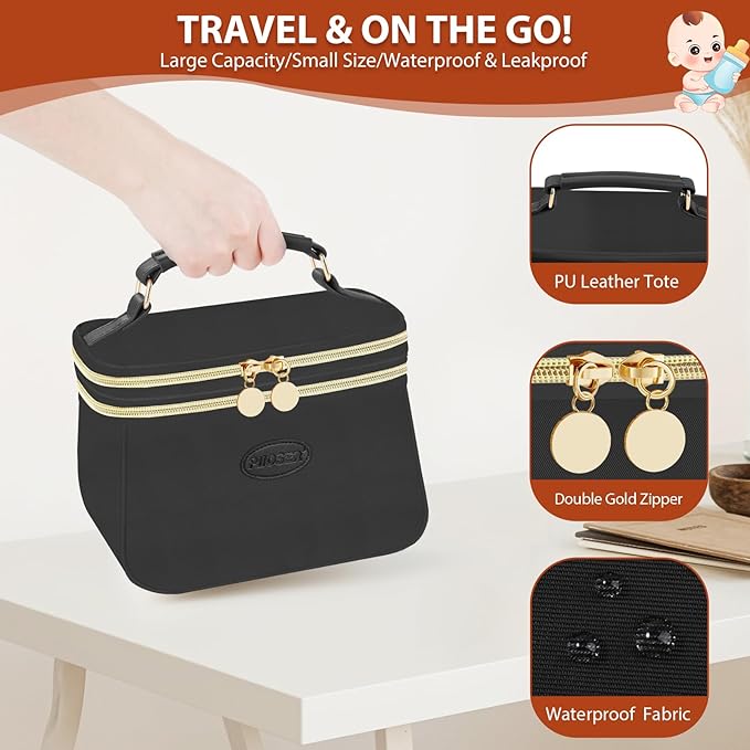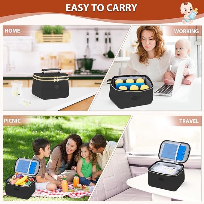 - FRIENDLY ON-THE-GO COOLER BAG: Our cooler bag features a stylish PU tote design, making it easy to carry and convenient for transport while traveling, working, shopping, or picnic. Its compact size allows it to fit inside larger bags, such as a breast pump bag, a large travel diaper tote, or a diaper bag backpack.