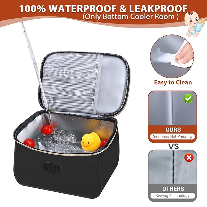 - WATERPROOF & LEAKPROOF Bag: Our food-grade EVA insulated liner adopts hot-pressing technology for 100% waterproof and leak-proof, and 5mm thickened foam keeps cold for up to 6-8 hours(with 2 Ice Packs). It's easy to clean the water or milk stains and just need a towel or damp paper towel.